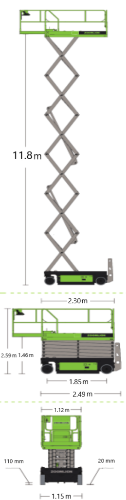 Podnośniki nożycowe (inaczej: zwyżki lub podesty ruchome) świetnie sprawdzają się m.in. do prac montażowych, instalacyjnych, logistycznych oraz wykończeniowych. Specjalnie dostosowane wymiary pozwalają na swobodny przejazd pomiędzy regałami wysokiego składowania. Nasze podnośniki nożycowe do wynajęcia sterowane są pilotem, z dołu lub z góry i są bardzo wygodne w użytkowaniu. Doskonale sprawdzą się w wielu branżach – są kompaktowe i potrafią wjechać w wiele trudno dostępnych miejsc. Podnośniki tego modelu oferują zakres roboczy do 14 metrów.